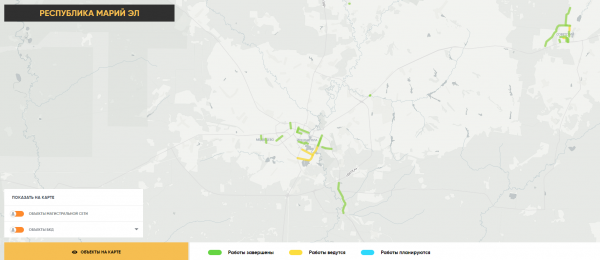 Жители Марий Эл могут следить за ремонтом дорог с помощью интерактивной карты.