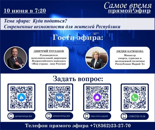 Жители республики могут задать свои вопросы в Телеграме и ВКонтакте, а также позвонив по телефону прямого эфира +7(8362) 23-27-70.