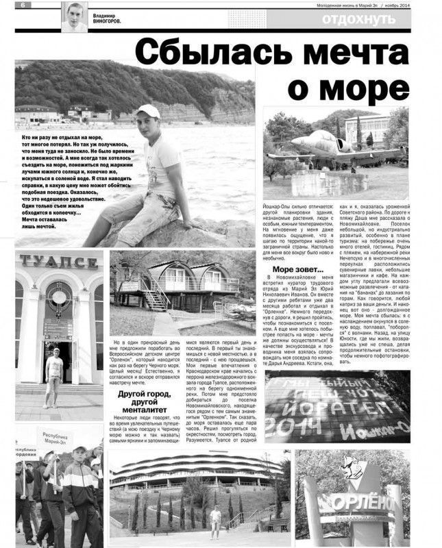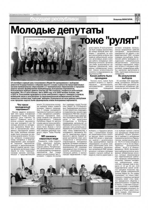 "Молодежная жизнь в Марий Эл". Ноябрь. 2014г.