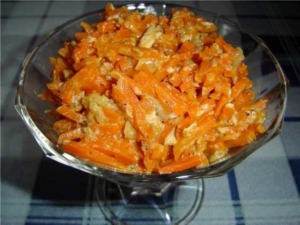 Приготовление: Яйца отварить вкрутую, остудить, очистить. Куриное филе отварить в чуть подсоленной воде до готовности. Остудить. Корейскую морковь переложить в миску. Добавить к моркови мелко нарезанное куриное филе. Яйца и сыр потереть на крупной терке. Добавить майонез и перемешать.