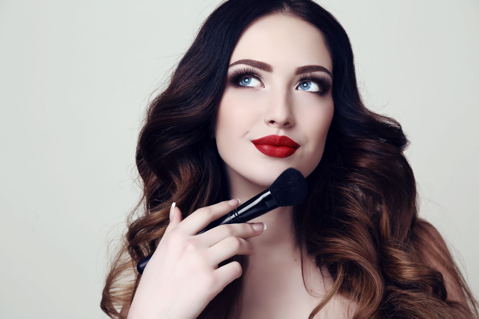 Завершить вечерний макияж можно с помощью нанесения более яркой помады или блеска.