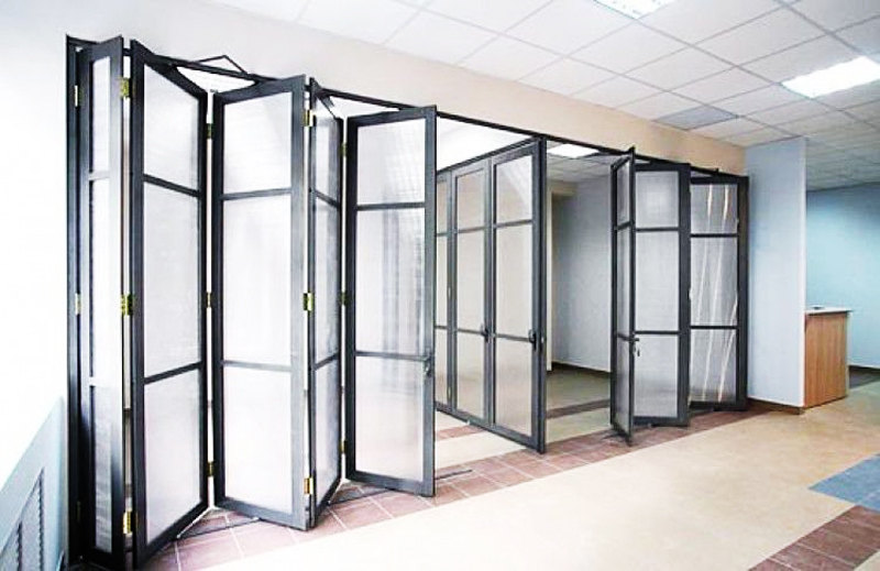 Очень популярный вариант - раздвижные двери либо раздвижная перегородка. Такая дверь производится под заказ из любого материала (дерево, пластик, алюминий), отлично подходит для зонирования офисного помещения. И ещё одна позиция – противопожарная и противовзломная дверь - надёжный щит против взломщиков, а также при возгорании.