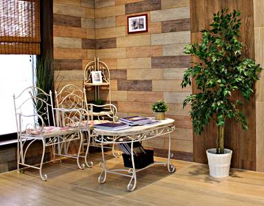 Кварцвиниловая плитка. На ее изготовление идет песок, винил, красящие пигменты. Эта плитка относится к ПВХ покрытиям. Она выпускается под мрамор, дерево, гранит. Очень прочная, не покрывается трещинами даже при сильных ударах. Практически не стирается. Пожаробезопасная.